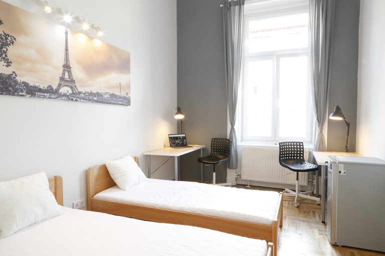 - Kiadó szobák: gyakran a legköltséghatékonyabb megoldás, ahol egy lakásban vagy házban bérelhetsz egy privát szobát, míg a konyhát, fürdőszobát és más közös tereket a többi lakóval (jellemzően 1-2 emberrel) osztod meg. Ez remek lehetőség a közösségépítésre és új barátságok kötésére. Az átlagos havi bérleti díj egy kiadó szobára Budapesten körülbelül 340-500 EUR között mozoghat. Sok kiadó szoba található a belvárosi kerületekben, mint például a Palotanegyedben, ahol partnerünk is kínál neked ideális szállásokat.